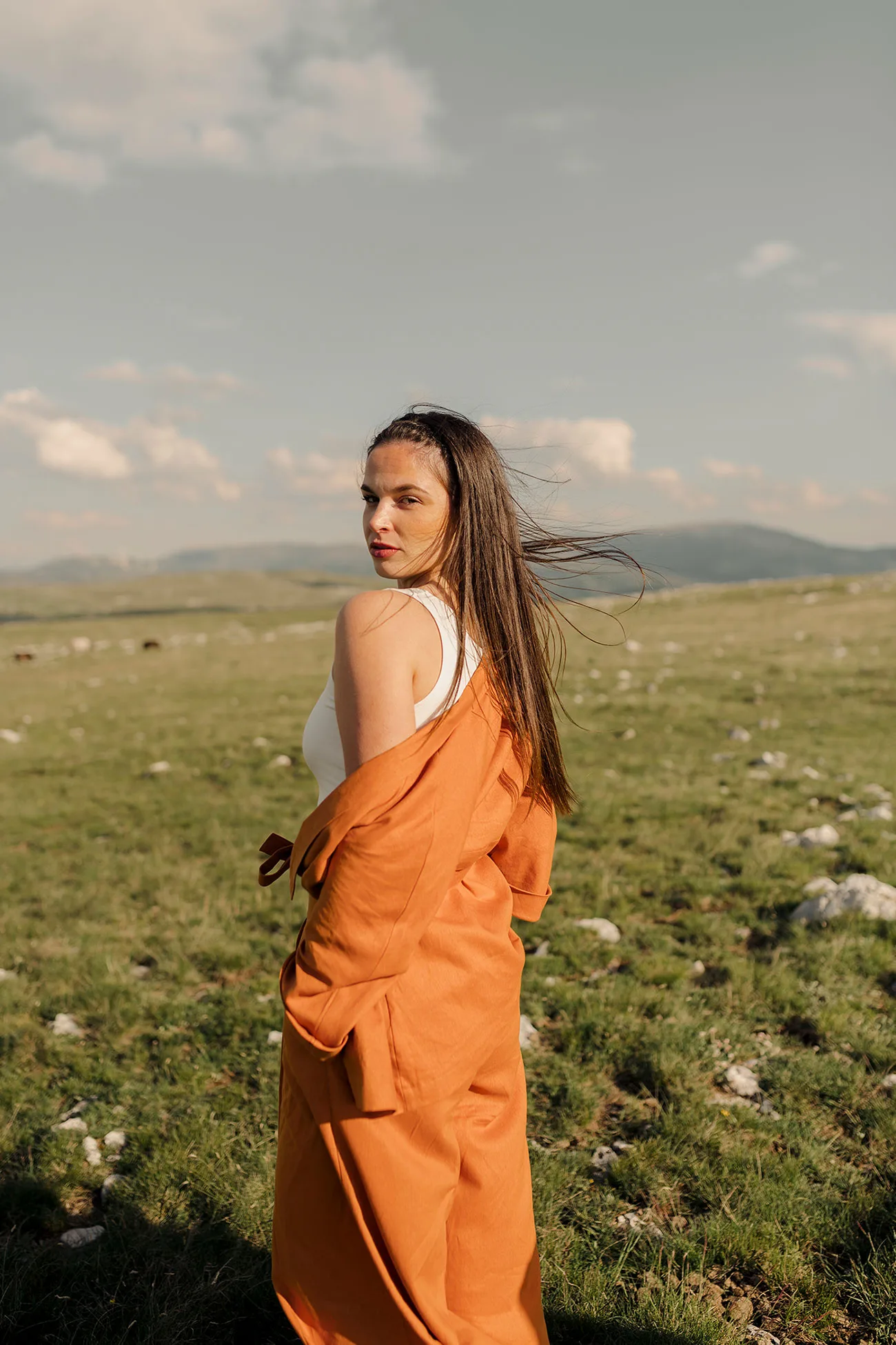 Fits ever body type and personality – play around with the style. Asymetrical longer in the back with slits at the side to easly tuck into your favorite undergarments.