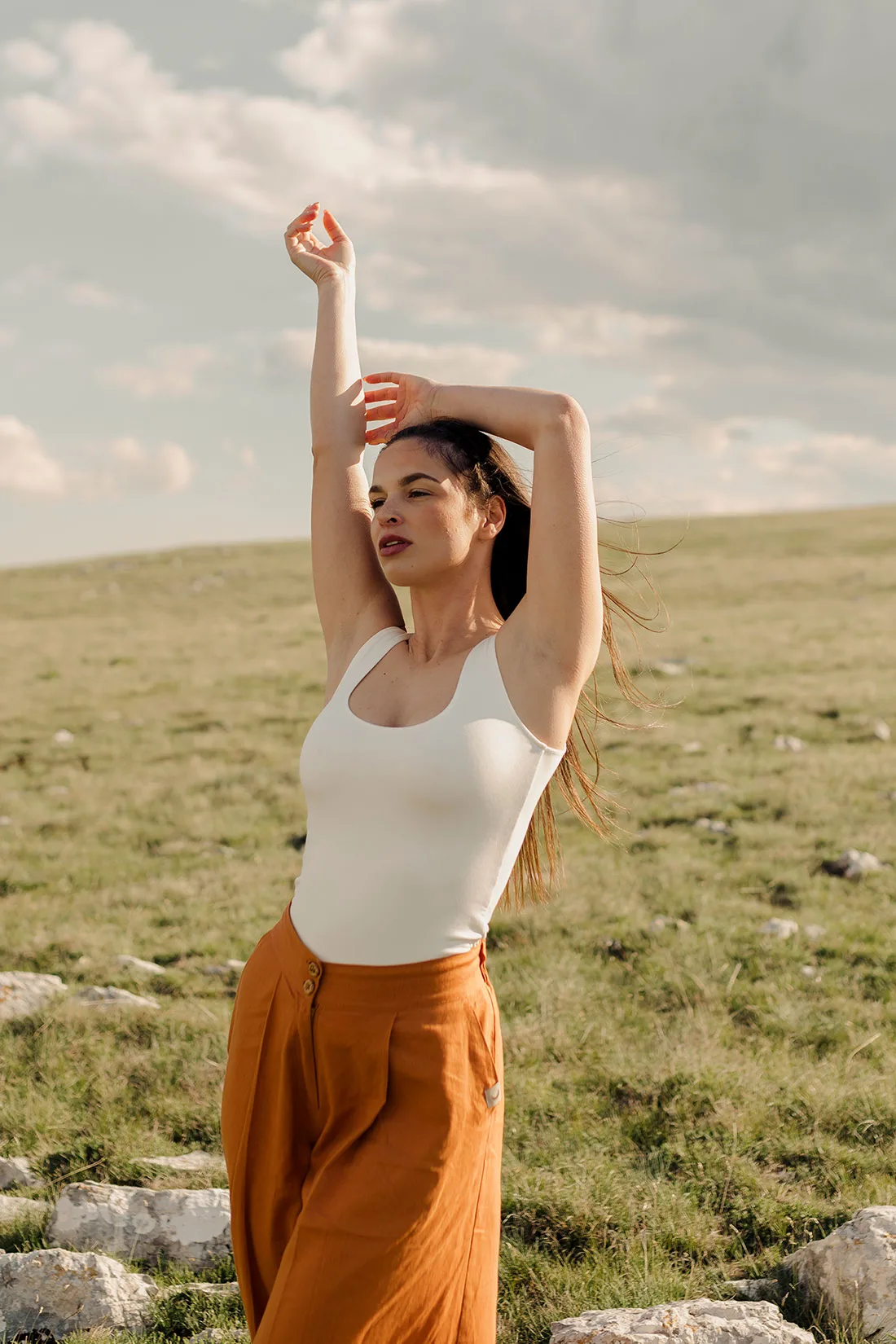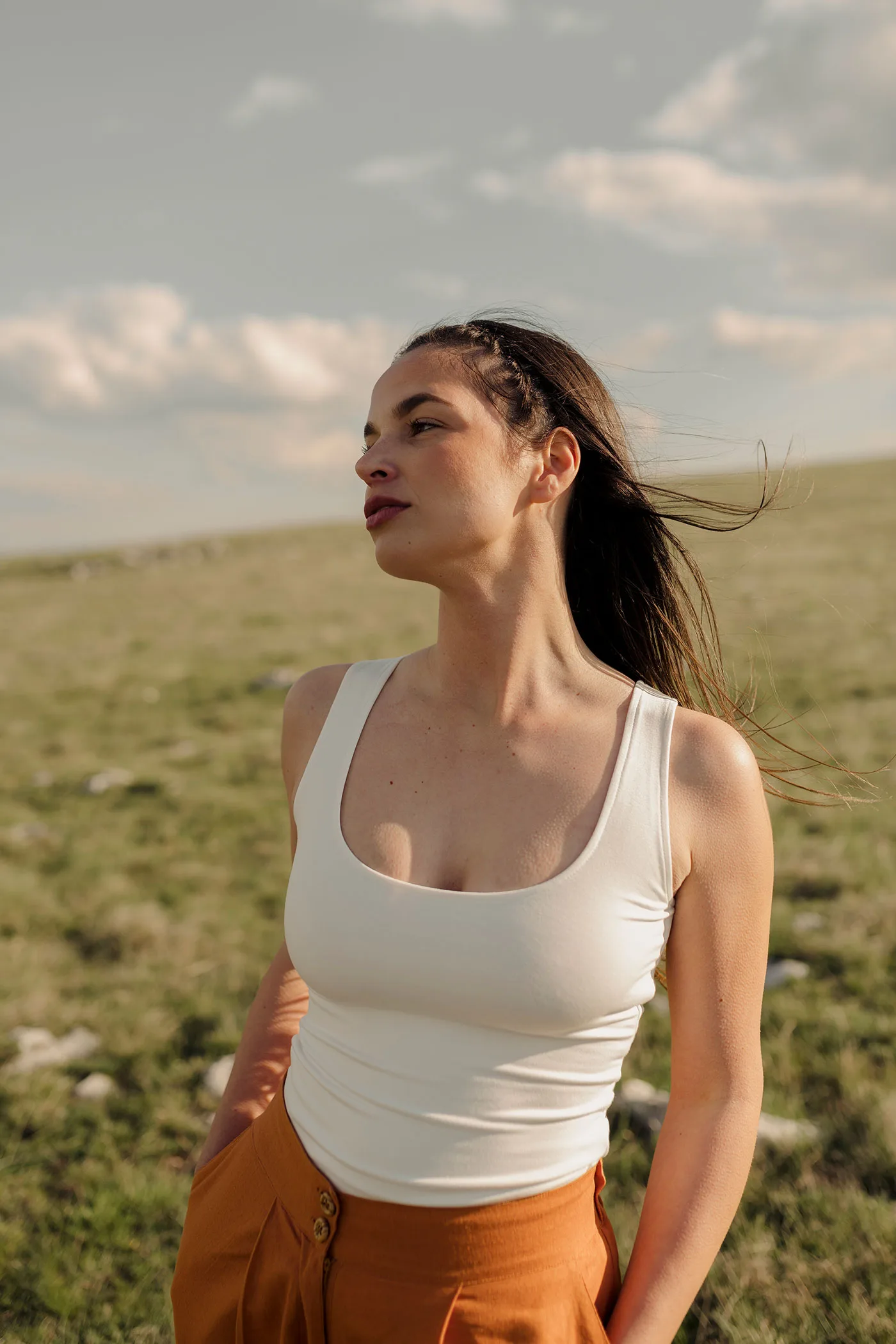 Two sided top is all about versatility and comfort. It’s slim-fitting, sleeveless, with an opening at the back or front, depending on your preference. Made from pure organic viscose, it’s gentle against your skin and feels incredibly soft.