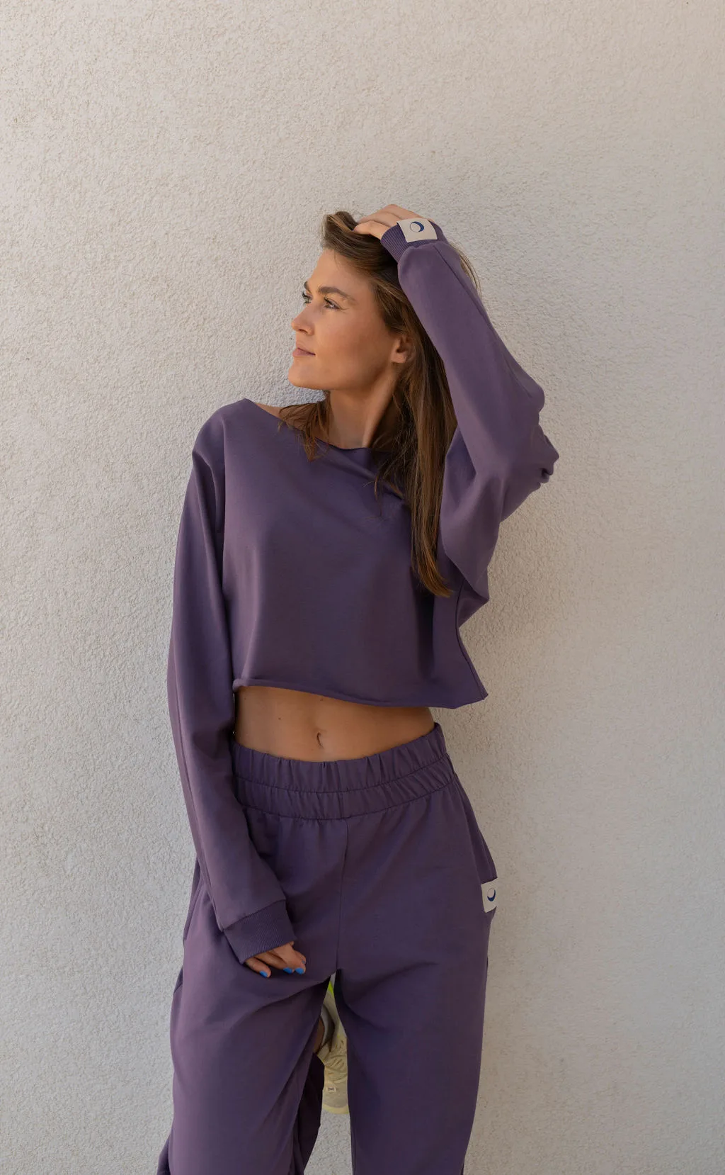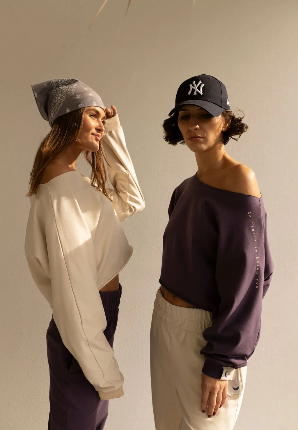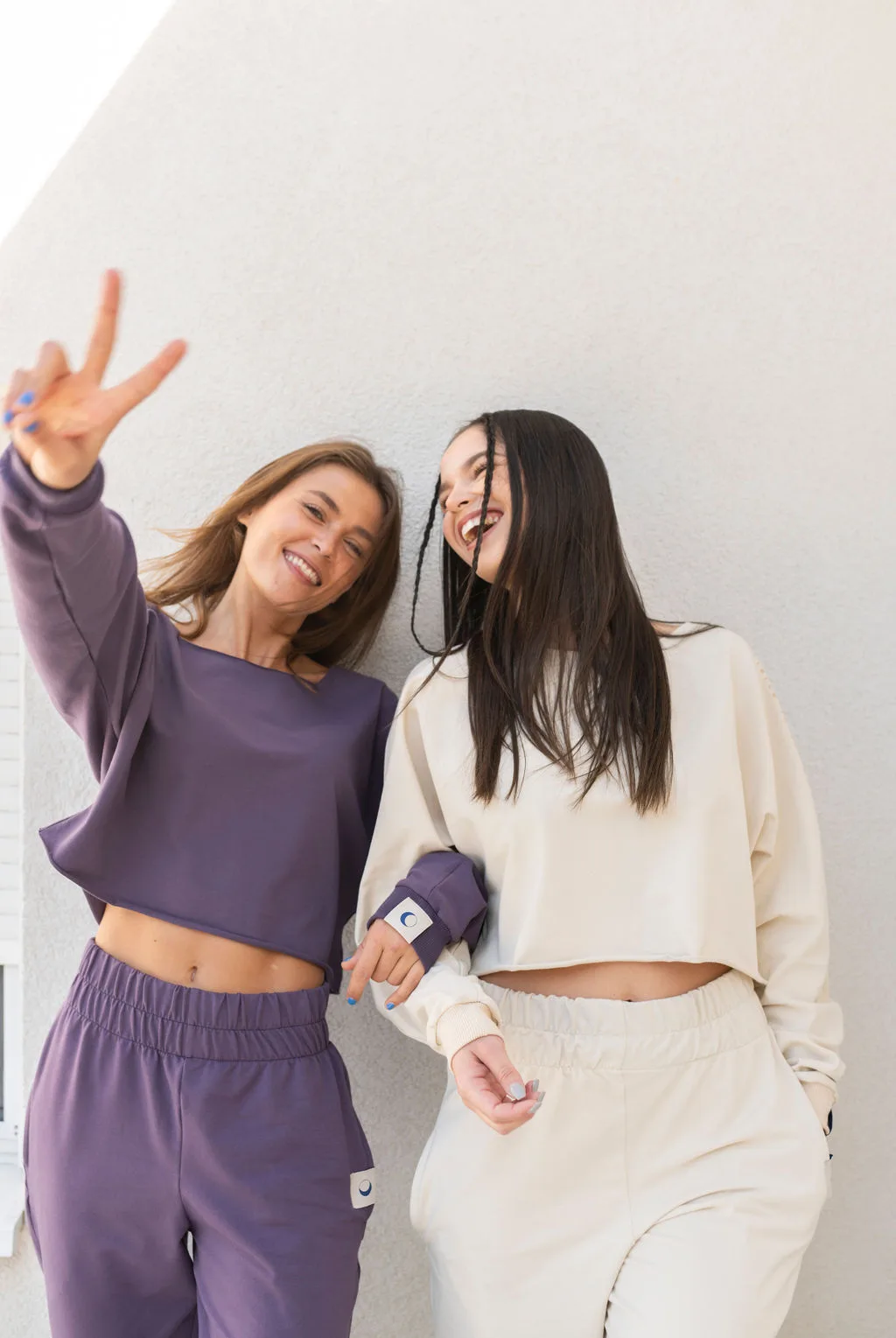 Oversized feel of this cropped sweatshirt can be styled any way you like, with jeans, skirts, and shorts. For the whole look, style it up with our matching color sweatpants or mix it with another color.