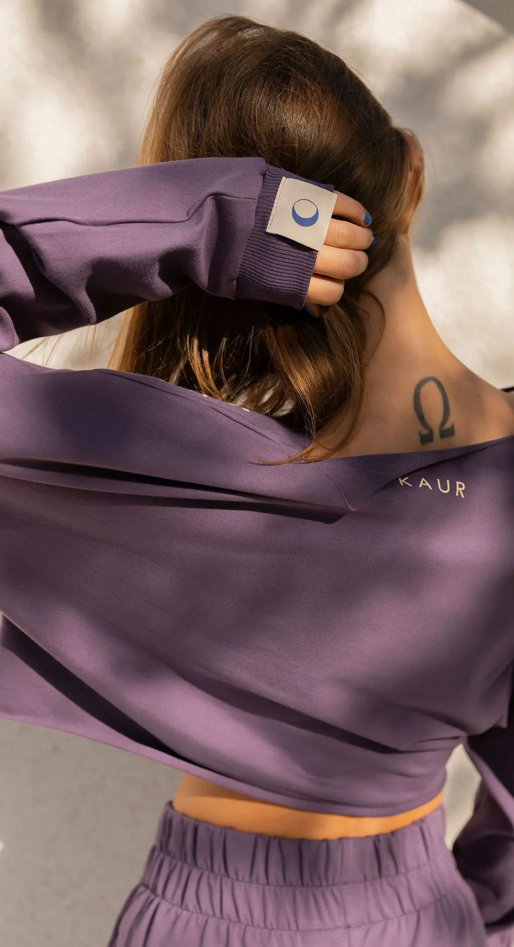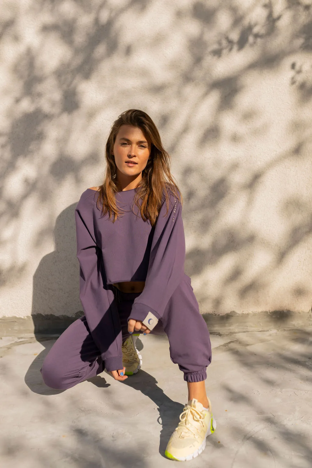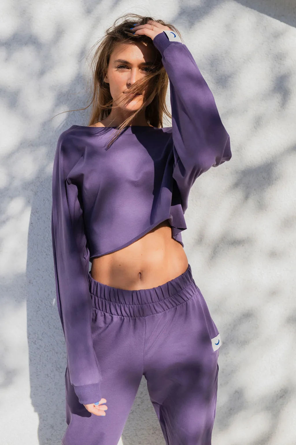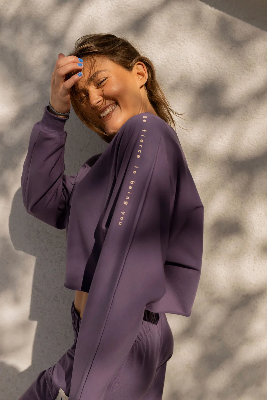 Oversized feel of this cropped sweatshirt can be styled any way you like, with jeans, skirts, and shorts. For the whole look, style it up with our matching color sweatpants or mix it with another color.