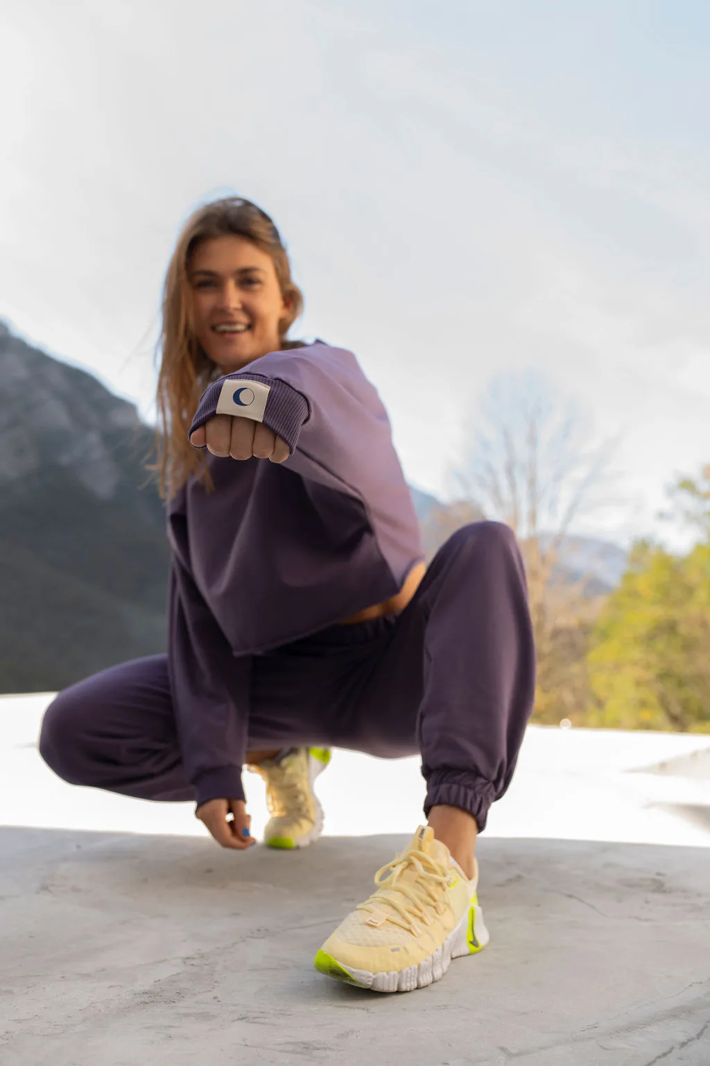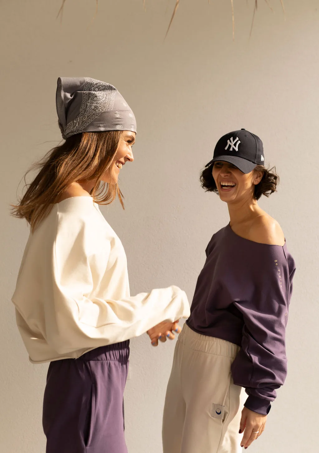 These sweatpants are an ultra cozy piece in your wardrobe. Their high waist emphasizes your figure and you can adjust the length of the leggings how you choose.