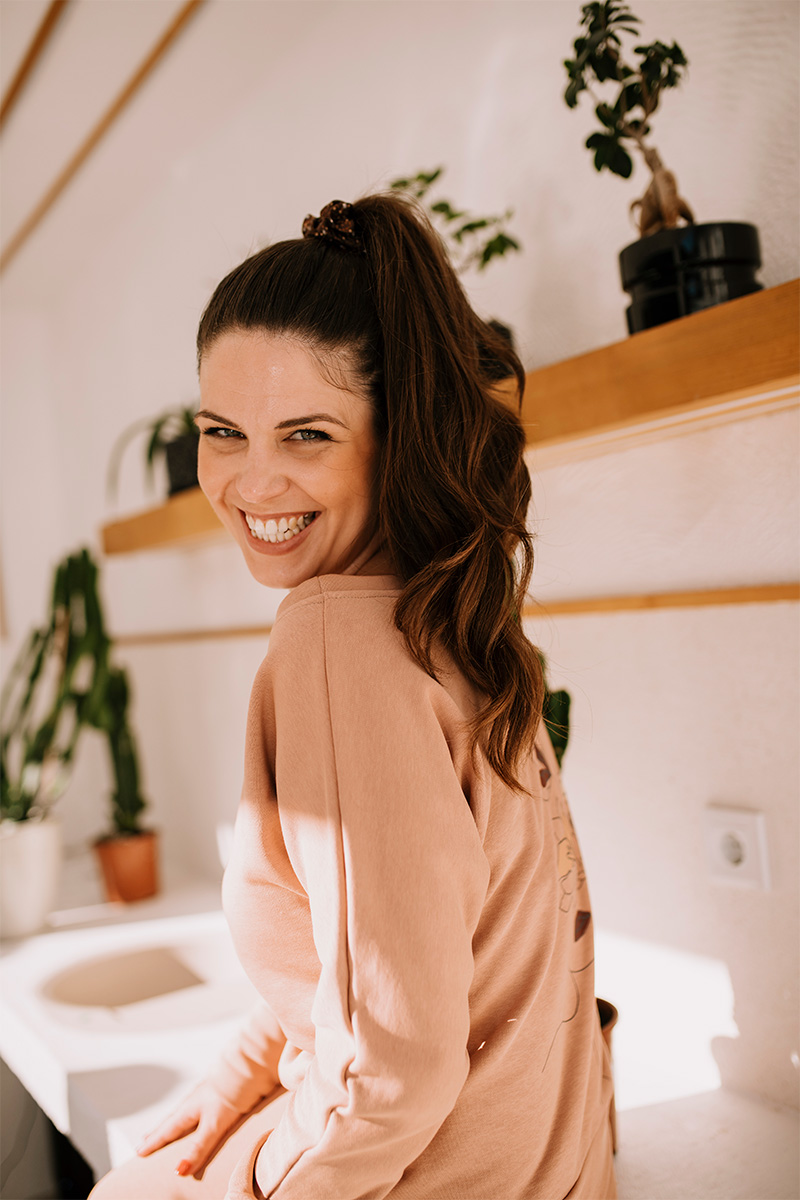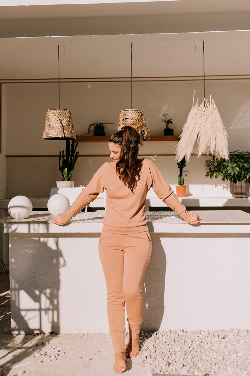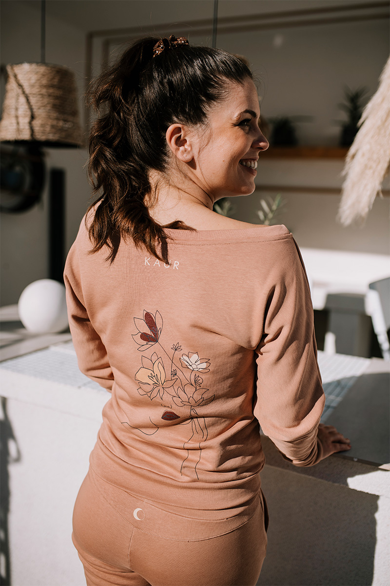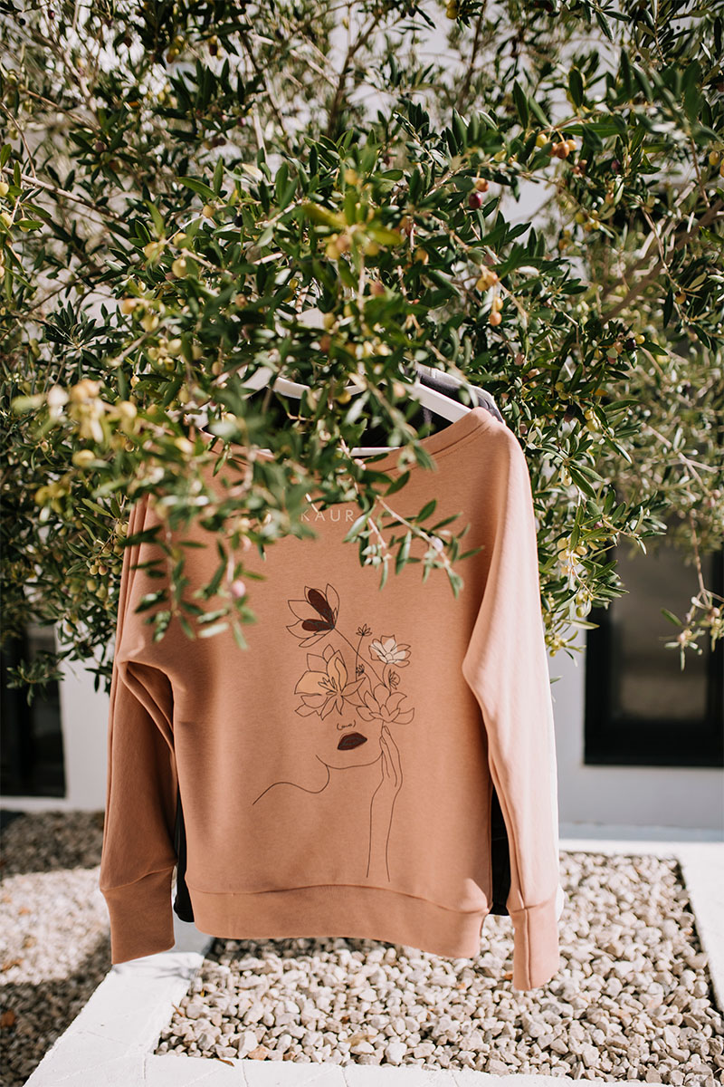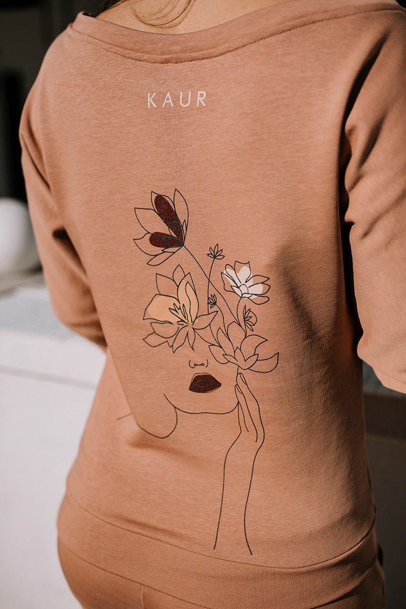 Elegant and comfy sweatshirt and jogger set with the tagline ‘Vibrate the Cosmos’ and beautiful print on the back of a mysterious girl being part of the Cosmos and being Cosmos herself.
