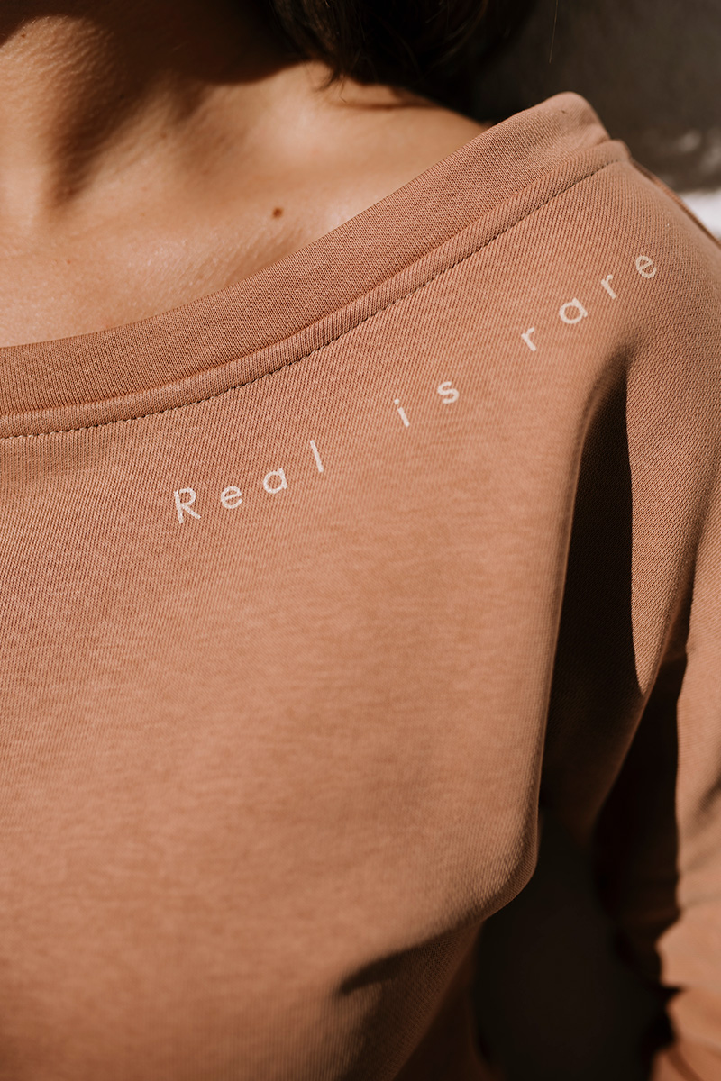 The wide crewneck emphasises the elegance of a woman, and the whole design follows your body line.