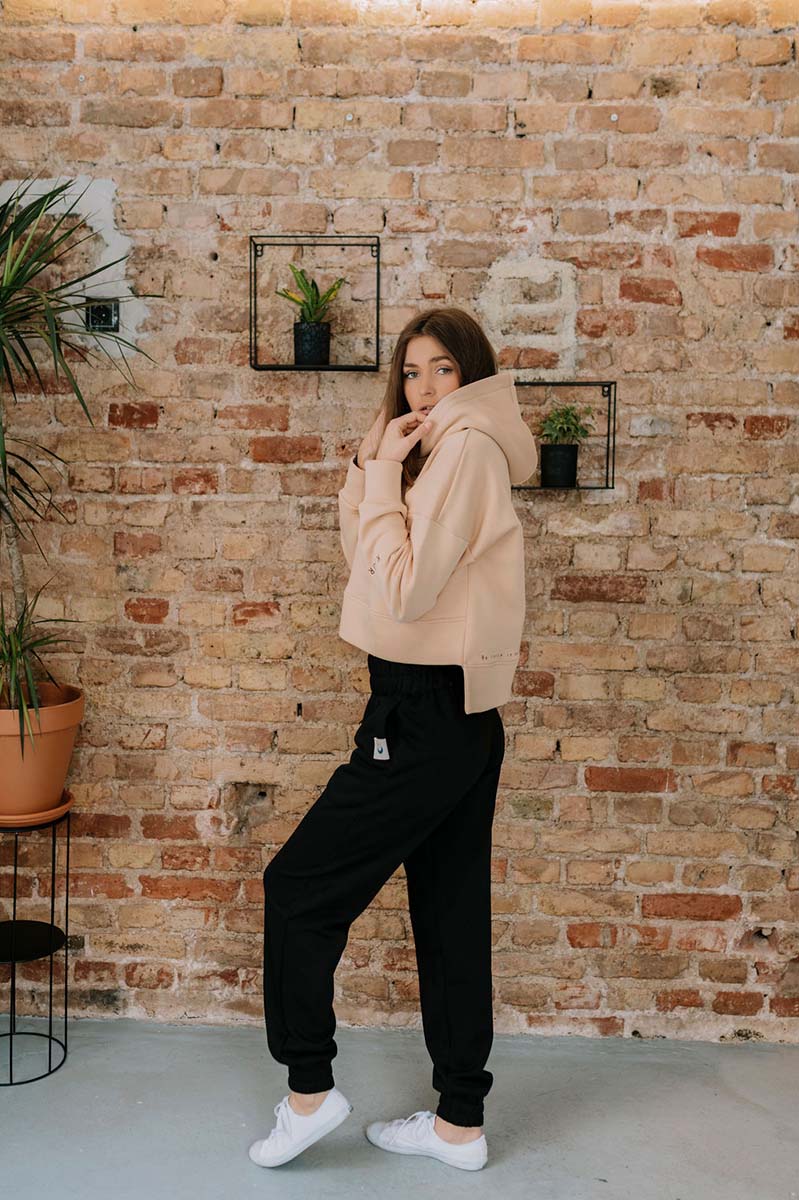 Elegant and comfy sweatshirt and jogger set with the tagline ‘Vibrate the Cosmos’ and beautiful print on the back of a mysterious girl being part of the Cosmos and being Cosmos herself.